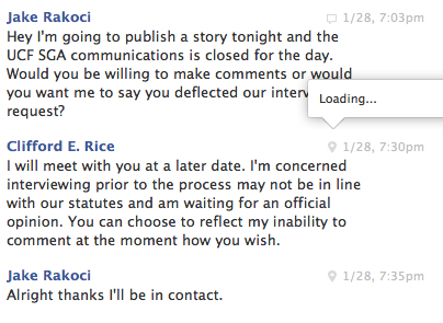KnightNews.com's own record of communication with Clifford Rice about SGA.