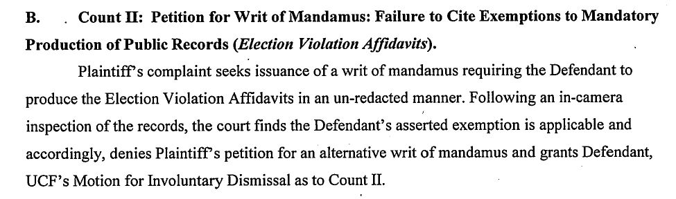 Knights News asked Mitchell about his remarks during the hearing in an email following the proceeding, asking him to explain whether he misspoke. Knight News also asked if in fact Judge Doherty did rule the election commission to be closed, why they were set to be open until Milich raised the issue of FERPA.