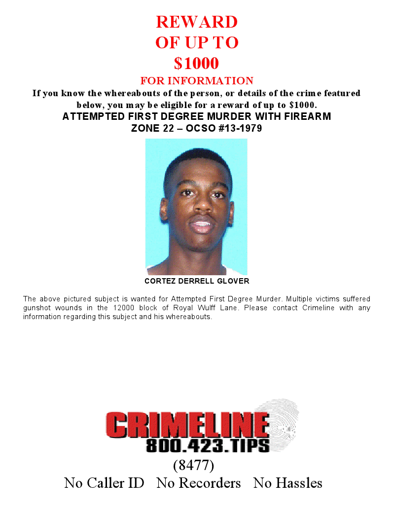 “This is an active investigation and detectives continue to search for Mr. Glover,” OCSO spokesperson Ginette Rodriguez said. “Mr. Glover is from Jacksonville and there is a possibility that he may flee there.”