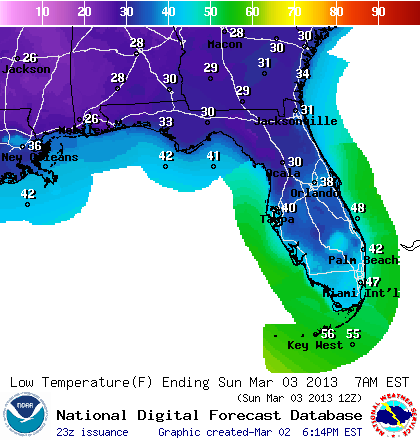 Orlando residents can expect a low in the high 30’s for Saturday night with frost temperatures forming Sunday evening with lows in the mid 30’s. On Monday, frost temperatures are expected to dissipate after 8 a.m. Monday with highs near 67 in the afternoon. Wind chill values, however, will stay as low as 33 early in the morning. Temperatures will remain chilly for the remainder of the week.