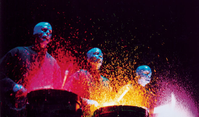 The show features three “Blue Men,” who perform a variety of musical feats, including paint drumming (seen above), which allows the audience to actually see the sound, instead of just hearing it. The trio also perform a variety of skits that involve unsuspecting members of the audience who become part of the show!