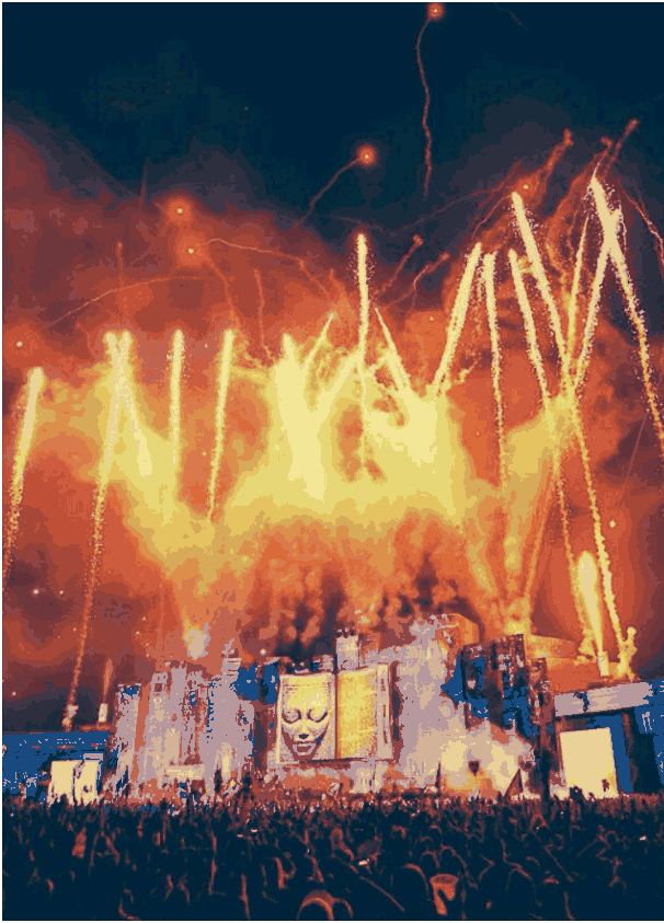 There were multiple stages spread across the lands, each decorated differently and designated for certain typed of music each day. One stage had 3D screens that looked as if water was pouring out of it. One stage was covered by a huge tent that was connected to the VIP pool and bar area. A stage in the middle of the grounds was surrounded by pools of water, another stage was made of a huge metal scorpion, and the list goes on and on. They were all incredible, each decorated uniquely as their own. Many even had cannons that shot out streamers, fire, colored smoke, and fireworks.
