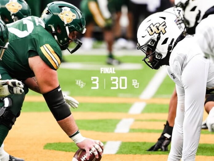 UCF finally got the Bears to punt the ball back to them after three quarters with no punts, but after a Tayven Jackson interception, Baylor had the ball within the 10-yard line and scored a touchdown to bring the score up 30-3. With Tayven Jackson throwing another interception and Baylor draining down the clock, UCF would officially fall to Baylor with the final score of 30-3.